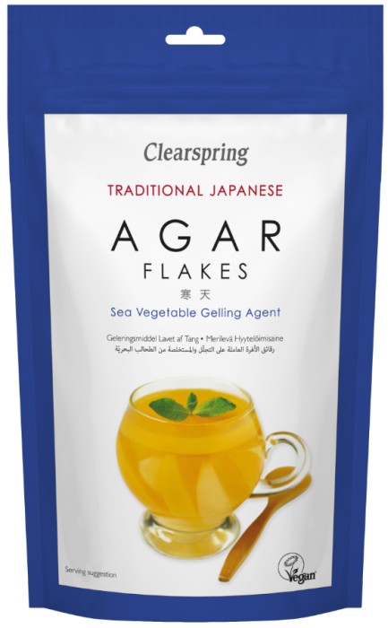 Clearspring är en hantverksproducent som gör Agar Flakes enligt den traditionella, långsamma metoden, dvs man använder inte svavelsyra eller kemiska blekmedel eller färgämnen i sin hantering av havsväxterna.