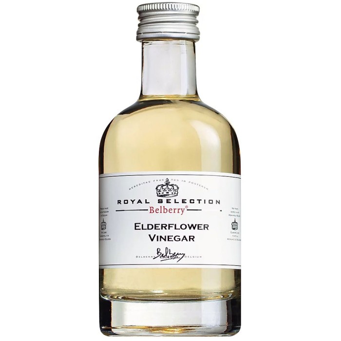 Vinäger med smak av fläder från belgiska Belberry. Blanda vinägern med lite extra jungfruolivolja för att få en fin dressing som är perfekt för sallader, carpaccio på nötkött eller tonfisk, asiatiskinspirerade recept och andra kalla rätter.