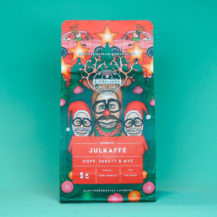 Ett mörkrostat Julkaffe för 2025! Årets Julkaffe blir en blandning av bönor med lika delar från Brasilien och Etiopien. De brasilianska bönorna står för fyllighet såsom kakao och hasselnötstoner. Bönorna från Etiopien står för fräschören från fruktsyrliga röda bär och citrustoner. Julkaffet passar perfekt till adventsfikat och uppesittarkvällen.
