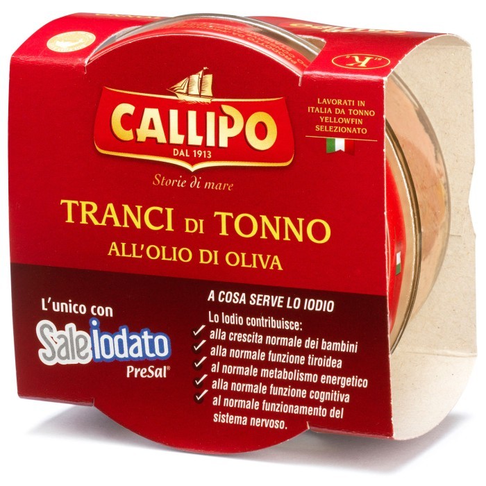 Tillverkad med noggrant utvalda råvaror och helt bearbetad i Italien. Den kännetecknas av mört, kompakt, ljusrosa kött som är ganska magert. Callipo tonfiskskivor är de enda med Presal jodiserat salt. Presal joderat salt är "skyddat" eftersom det, tack vare en särskild teknisk process, bibehåller en konstant jodhalt även efter tillagning och i livsmedelsberedningar, vilket säkerställer dess upptagning.