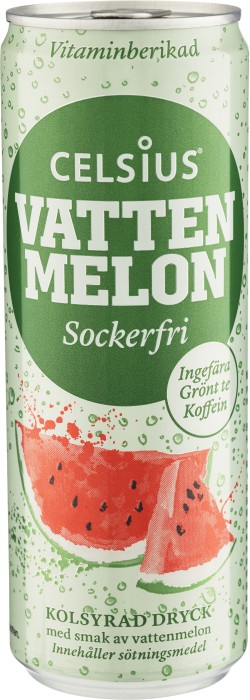Celsius Vattenmelon är en kolsyrad dryck med den fräscha sommarsmaken vattenmelon.