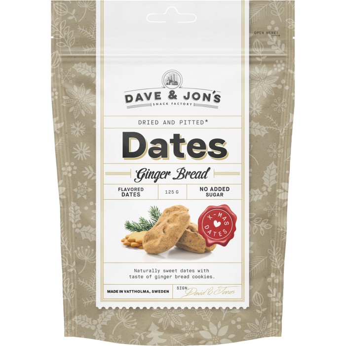 Mjuka urkärnade dadlar med smak av klassisk pepparkaka. Naturligt söta, kryddiga och helt utan tillsatt socker. Perfekt till mellanmål, fika eller när du vill unna dig något gott!