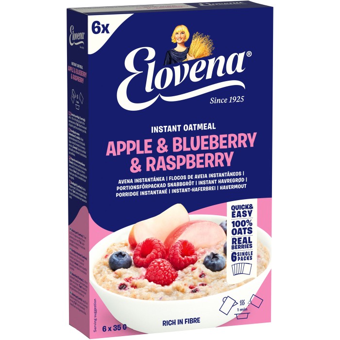 Elovena Havregrynsgröt Äpple Blåbär Hallon 6x35g