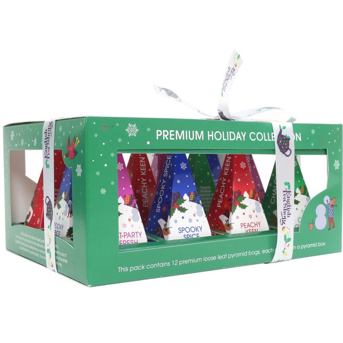 En lyxig presentask från English Tea Shop fylld med 12 pyramidteer i olika smaker - perfekt för vintermys och julens stunder. Varje tepåse bjuder på en ekologisk smakupplevelse med noggrant utvalda ingredienser och en härlig balans mellan klassiska och festliga toner.