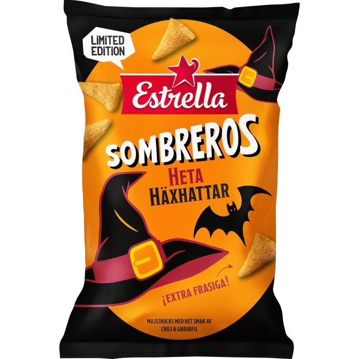 Det är inte mörk magi som gör dessa så svåra att motstå. Det är den spröda majsbasen från Sombreros som matchas med het chili och syrlig sourcream. Blandade chilisorter ger ett kryddigt klös som smyger sig fram: Det perfekta snackset för halloweenhänget.