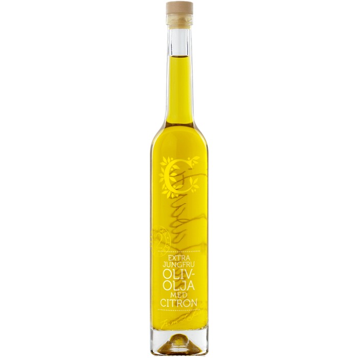 Extra jungfru olivolja (99 %), naturlig citronarom. För Bäst före-datum, vänligen expandera fliken "Produktfakta".