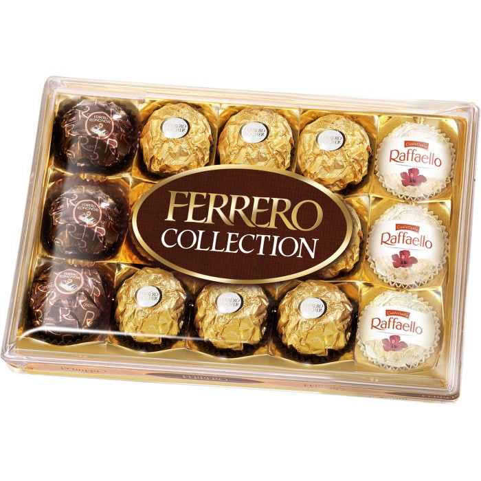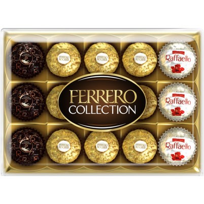 Ferrero Collection är en chokladask som består av de älskade Ferrero-pralinerna: Ferrero Rondnoir, Ferrero Rocher & Raffaello. Asken har en smak för alla och passar utmärkt att ge bort i present!