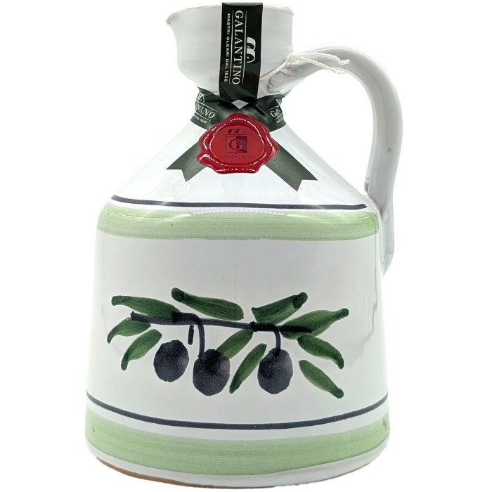 Galantino Orcio Angel Olivolja 500ml är en exklusiv extra virgin olivolja av högsta kvalitet från Galantino i Italien. Den är kallpressad på 100% italienska oliver och tappad i eleganta, handgjorda och handmålade lerkrus.