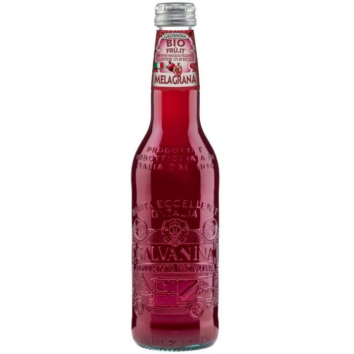 En ekologisk läskedryck med smak av granatäpple! I början av 1900-talet gjorde Galvanina sina första förpackningar i glasflaskor, som till största delen blev konsumerade av en liten krets adliga familjer i området. Sedan dess har fler och fler konsumenter kommit att uppskatta mineralvattnet Galvanina för dess smak och kvalitet. År efter år har försäljningsområdet utökats och täcker idag hela Italien.