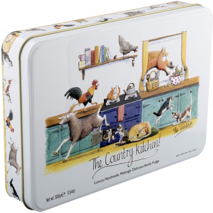 Upptäck den klassiska smaken av Gardiner's of Scotland Country Kitchen Vaniljfudge. Varje bit är traditionellt handgjord och förpackad i en elegant präglad plåtask med motiv av det lantliga köket. När fudgen är uppäten kan plåtasken användas för att förvara minnessaker eller små skatter.