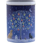 Krämig och mjuk Clotted Cream-fudge i plåtburk som vackert illustrerar längtansfulla blickar mot ett julklappsfyllt träd.