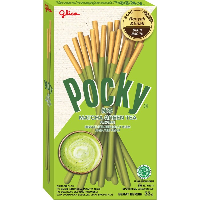 Pocky är ett japanskt godis gjort på kexpinnar, doppade i olika smaker. Pocky Matcha Green Tea Flavour är doppade i härligt, japanskt grönt te! Pocky Matcha Green Tea Flavour kommer i en fin ask som är lätt att öppna och trevlig att förvara dem i. Det är svårt att inte bli beroende av dessa japanska sötsaker, och de är en perfekt present till dig själv eller till någon du tycker om!