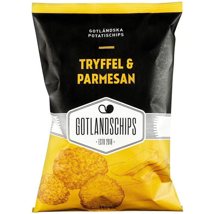 Gotländsk tryffel har en underbar arom och en förmåga att lyfta alla andra smaker. I Gotlandschips Tryffel & Parmesan möter den parmesanens fylliga sälta i en ovanligt välbalanserad smakupplevelse, med en tydlig känsla av lyx i varje tugga. Chipsen grytfriteras omsorgsfullt på gotländsk potatis i små satser för att få fram en rustik krispighet och naturlig potatissmak. Friteringen sker i en fritös helt driven av fossilfri biogas, som dessutom är en del av en cirkulär produktion där alla restprodukter återvinns eller återanvänds. Resultatet är ett elegant chips med varm tryffelton, nötig parmesan och ett crunch som gör det svårt att sluta.