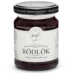 Rödlöksbitar har varsamt kokats i svartvinbärsjuice och smaksatts med rödvinsvinäger, salt och svartpeppar. En smakrik chutney till grillat kött och patéer. God att blanda med crème fraiche som dippsås. Perfekt på en skink- eller ostmacka!