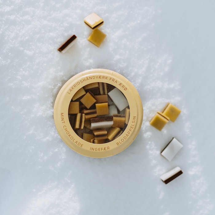 Handgjord lakritskonfekt från Danmark av absolut finaste kvalitet. Glutenfri lakrits, vegansk och av naturliga ingredienser. Säsongsask med lakritsmassa och följande smaker: Mintchoklad, Ingefära och Blodapelsin.