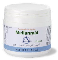 Helhetshälsa Mellanmål är ett proteinrikt näringspulver som även innehåller "greens". Låg kolhydrathalt. Innehåller kalcium, magnesium, B12, järn och jod, som bidrar till en normal energiomsättning.