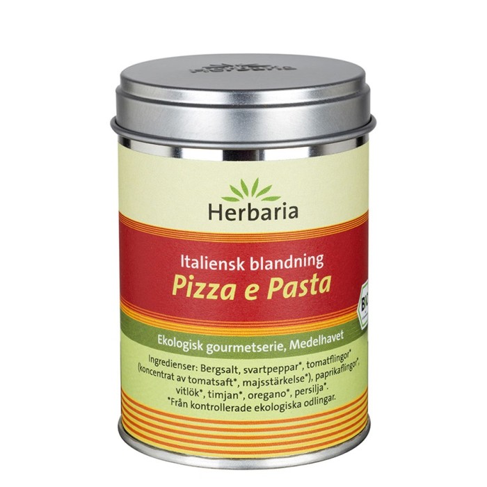 Herbaria Pizza e Pasta är en ekologisk kryddblandning som förstärker smaken på dina pastarätter och på pizza. Pizza e Pasta-kryddan passar till de flesta rätter och du kan använda den som bordskydda i en kryddkvarn.