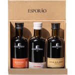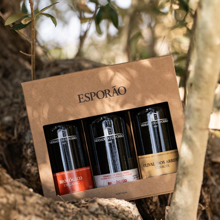 En uppskattad presentbox med tre ekologiska delikatesser från Esporão. Boxen innehåller två extra virgin olivoljor med olika karaktär samt en ekologisk rödvinsvinäger, perfekt för dig som vill upptäcka nyanserna i kvalitativa råvaror eller ge bort en smakfull gåva.