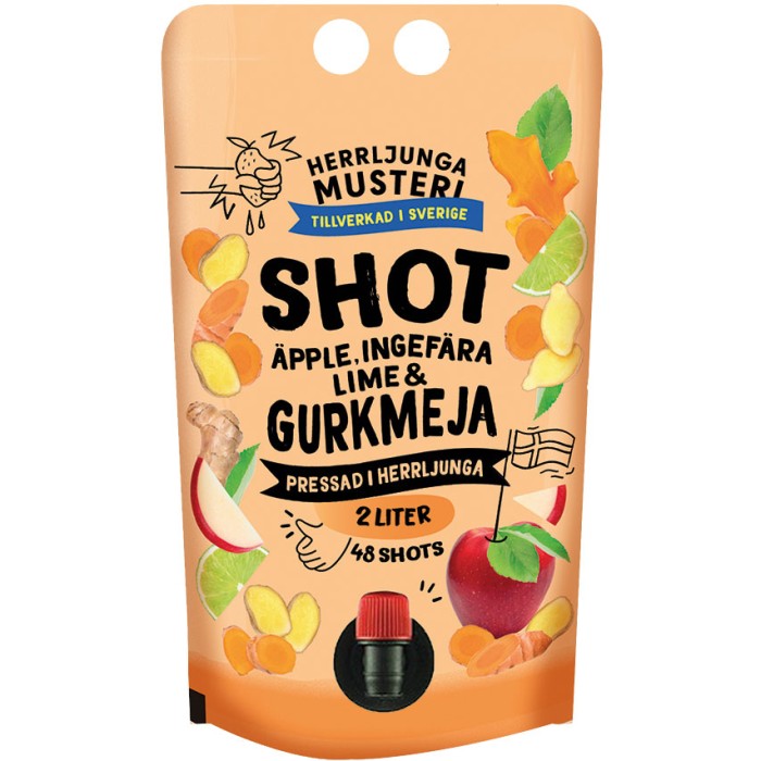 Herrljunga Musteris kallpressade shot av äpple, lime och gurkmeja är en riktig hälsoboost. Fantastisk smak och fullproppad med nyttigheter som stärker dig att hålla baciller på avstånd.