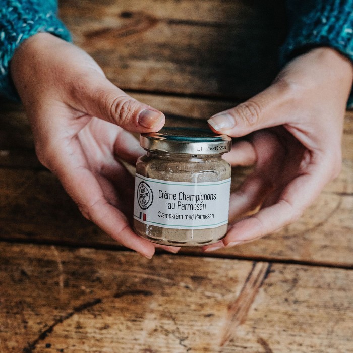 Det här är en spread som verkligen kommer till sin rätt tillsammans med mustigare tillbehör: tänk ett gott surdegsbröd eller en opastöriserad vitmögelost där svamp- och parmesansmakerna lyfter helheten. Den är också fantastisk med ett glas rött vin eller som smakförhöjare i varma rätter, som en svampröra på toast eller nedrörd i pasta.