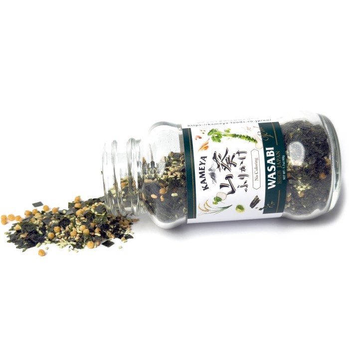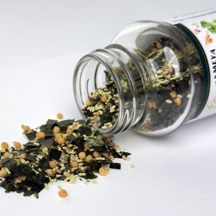 Kameya Wasabi Furikake är en klassisk japansk kryddblandning som ger både umami och en frisk hetta från äkta wasabi. Traditionellt används furikake som topping på ångkokt ris, men den passar lika bra på onigiri, ochazuke, pasta eller andra rätter som du vill lyfta med extra smak.