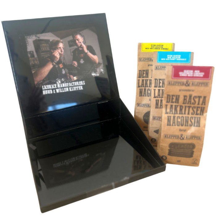 Klepper & Klepper gör lakrits för människor som älskar smak! Den här presentlådan i plåt fungerar dubbelt: både som förvaringsburk och exponeringsburk. En stilren plåtburk som tål att stå framme, presentklar direkt ur kartong och enkel att fylla på.