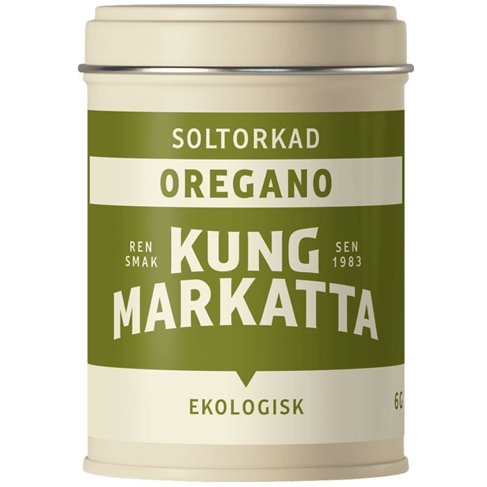 Kung Markatta Oregano är en aromatisk ört som har ångbehandlats och soltorkats för att behålla sin fylliga, naturliga smak. Den klassiska smaken för tankarna till det italienska köket och passar utmärkt i pizza, pasta, tomatsåser och på ostmackor.
