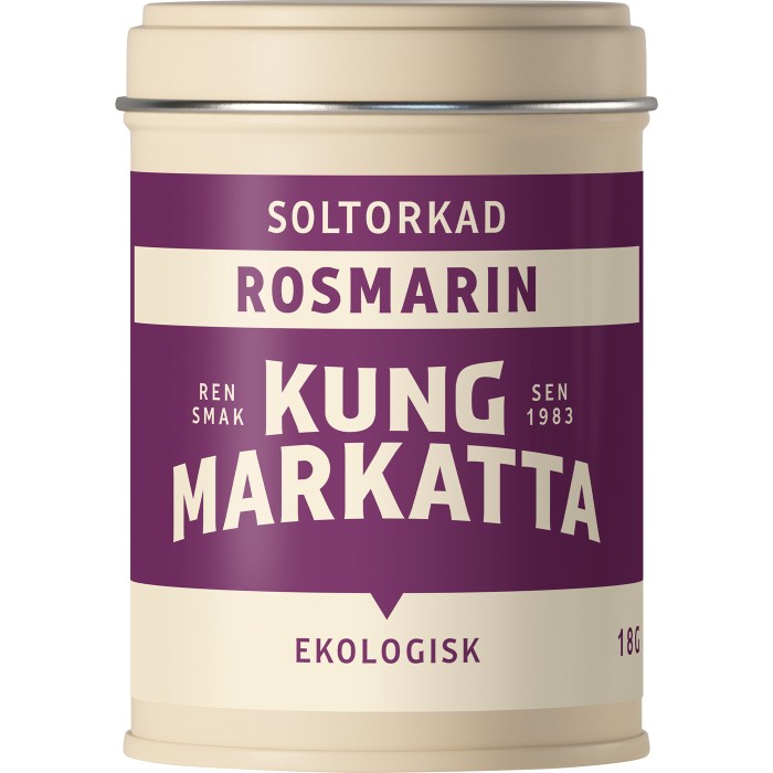 Kung Markatta Soltorkad Rosmarin är en klassisk ört som har skördats varsamt och bearbetats med omsorg för att bevara sin intensiva smak och arom. Den passar utmärkt i vegetariska rätter men är även idealisk för att smaksätta lamm, kalv, fläsk och kyckling.
