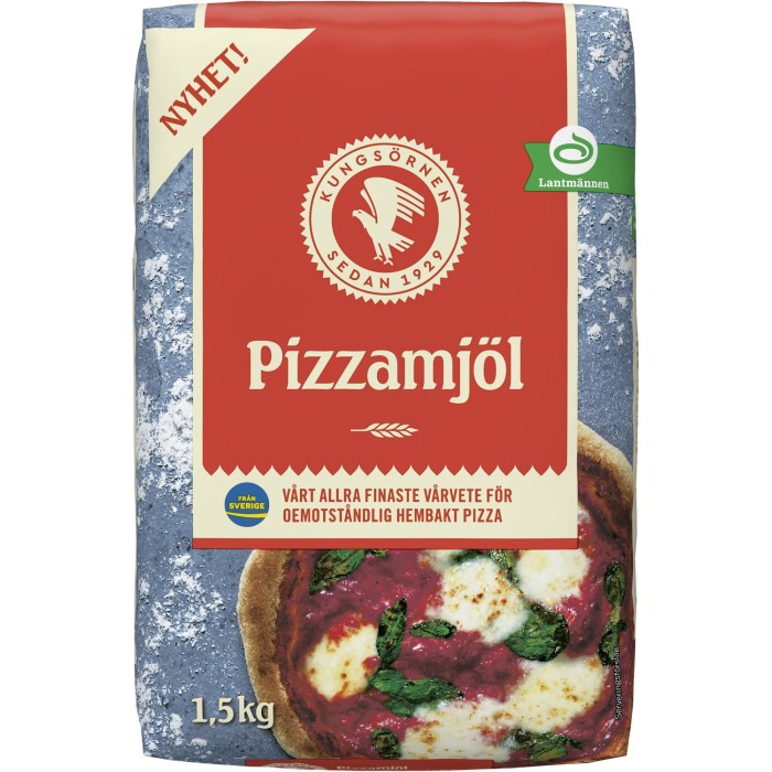 Från Malmö kvarn kommer Kungsörnens allra finaste pizzamjöl. Till perfektion malt svenskt vårvete, med extra hög proteinhalt. Det ger den där smidigt, perfekta degen, som mår lika bra i vedugnen som i hemmaugnen. Som trivs lika bra med köttbullar och vällagrad ost som med marzanotomater och mozzarella.