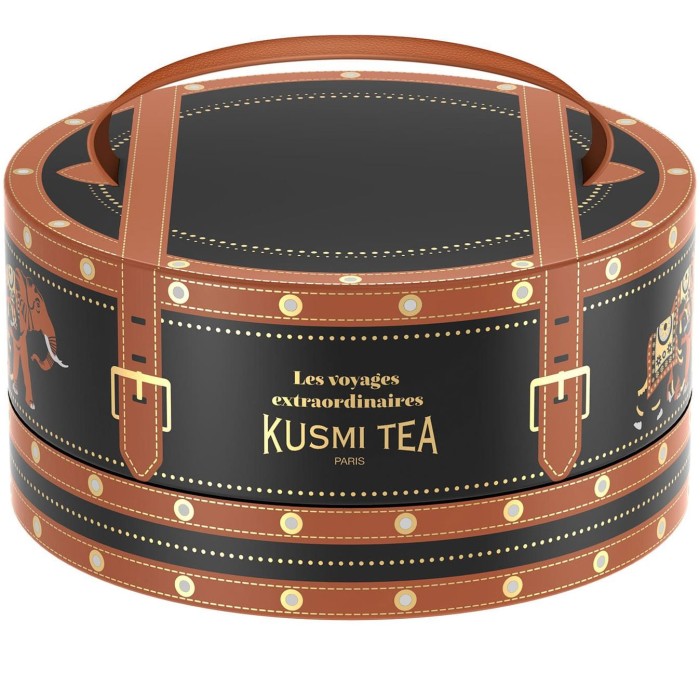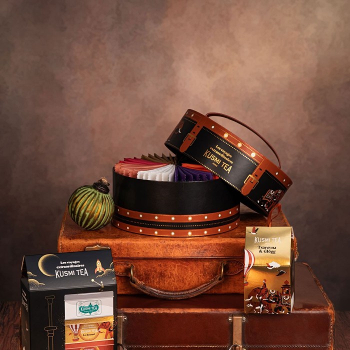 En lyxig hattask från Kusmi Tea fylld med 48 blandade tepåsar i 8 av deras mest omtyckta smaker, alla ekologiska. Här möts svart-, grönt-, vitt- och örtte i en variationsrik blandning som passar från morgon till kväll. Perfekt som present eller för dig som vill utforska Kusmis värld av te. Asken bjuder på både klassiker och nyheter – Tsarevna, Glögg, Le Dessert, Anastasia, Tropical White, Aqua Rosa, Ritual Immune Defense och Ritual Sleep – för en smakresa genom värme, fräschör och harmoni.Kusmi är ett legendariskt tehus som erbjuder de mest utsökta teblandningarna. Med ett öppet sinne och en stor upptäckarlust skapar Kusmi sin egen väg i teets värld. De vill få alla tedrickare att upptäcka det bästa tevärlden har att erbjuda – eleganta teer för alla tillfällen. Redan år 1867 grundade Pavel Kousmichoff tehuset Kusmi i St Petersburg. När han lämnade landet i samband med den ryska revolutionen hamnade han i Paris, där företaget har huserat sedan dess.