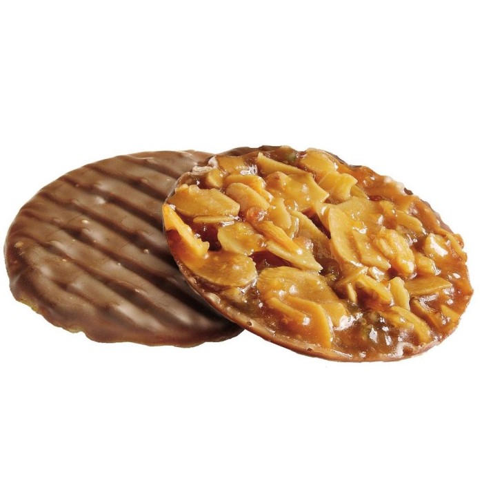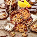 Florentinkakor är tunna, lätt sega kakor med mandel och en mild ton av apelsin, lagda på en botten av mjölkchoklad. Passar bra till kaffe eller som ett mindre tilltugg. Innehåller 8 kakor per förpackning.