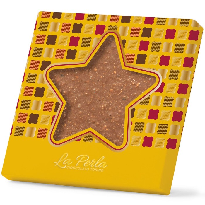 En len mjölkchokladkaka från La Perla med ljuvlig smak av kola, krispig maräng och rostad hasselnöt. En perfekt balans mellan sötma och crunch, förpackad i en vacker ask med stjärnfönster – lika fin som gåva som till vinterfikat. En julfavorit som kombinerar italienskt hantverk med festlig elegans.