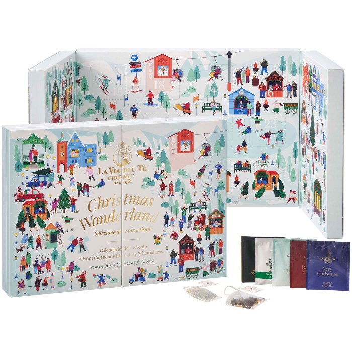 Ge dig själv eller någon du bryr dig om en smakfull nedräkning till jul med denna eleganta tekalender från det italienska tehuset La Via del Té. I en vackert designad ask - som öppnas likt en bok - döljer sig 24 noggrant utvalda tepåsar av högsta kvalitet. Varje dag fram till julafton får du upptäcka en ny smakupplevelse, från fruktiga och blomstriga blandningar till kryddigare infusioner.