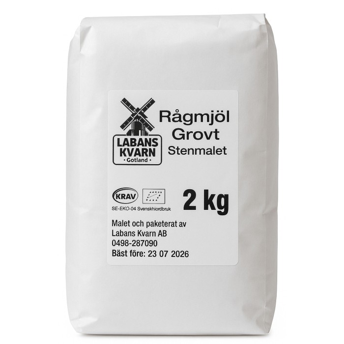 Labans Kvarn Rågmjöl Stenmalet är ett ekologiskt, grovt rågmjöl malt på sten där hela kärnan tas till vara. Inget är borttaget - vilket ger ett naturligt och smakrikt mjöl fullt av fibrer, mineraler och den genuina smaken av råg.