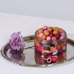 52% vit choklad (EU) (minst 26% kakaotorrsubstans) (socker, kakaosmör, HELMJÖLKSPULVER, emulgeringsmedel (SOJALECITIN, lecitin), naturlig arom), 17% socker (EU), rismjöl, invertsockersirap, melass, glukossirap, 3% fruktpulver (EU/icke-EU) (jordgubbar, passionsfrukt, persika (frystorkade), banan (spraytorkad)), 1% rålakrits (icke-EU), kakaosmör, HELMJÖLKSPULVER, ytbehandlingsmedel (arabisk gummi, shellack, carnaubavax), rapsolja, salt, naturlig arom, vaniljaromatiserat GRÄDDPULVER (GRÄDDE (spraytorkad), naturliga aromer), färgämnen (karmin, kalciumkarbonat, betakaroten, rödbeta), stabiliseringsmedel: arabisk gummi, salmiak, syra: äppelsyra, emulgeringsmedel (SOJALECITIN, lecitin).