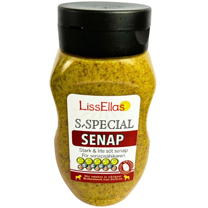Senap i mästarklass! LissEllas goda senap S-Special har blivit tilldelad både guld och silver på senaps-VM. Den starka senapen är söt och komplex på samma gång, vilket gör att den gifter sig fint med många olika smaker och maträtter. Vi äter den gärna ihop med korvar, ostar och skinka. En unik senap med mycket karaktär!