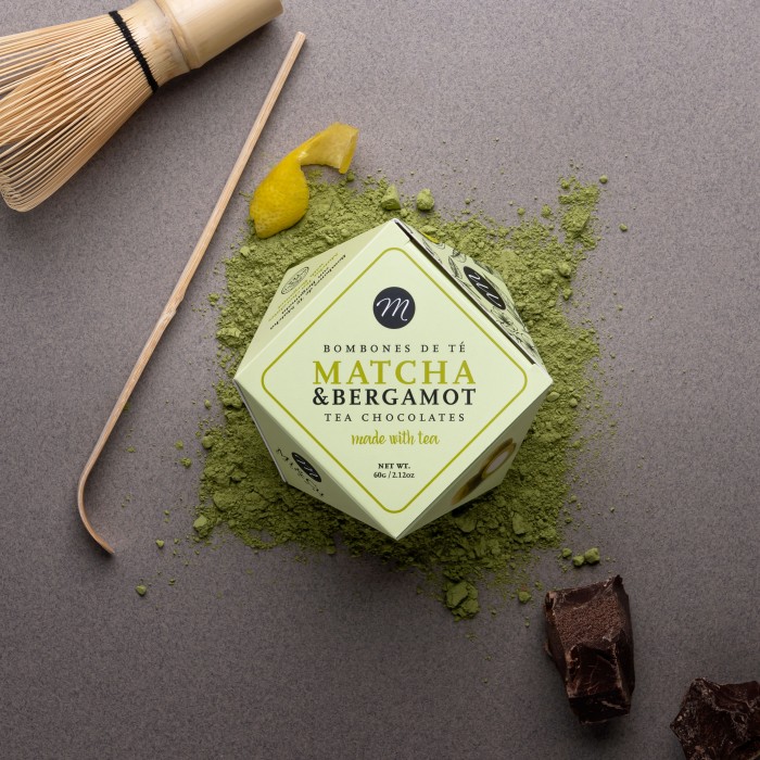 Vit choklad smaksatt med matcha te och en hint av bergamott bjuder på en elegant och aromatisk smakprofil. Den lena chokladen möter matchans milda örtighet som ger djup och karaktär, samtidigt som bergamottens friska citrusaktiga ton lyfter helheten. Resultatet är en balanserad och smakrik kombination där sötma, friskhet och mjuk örtighet samspelar på ett harmoniskt sätt.