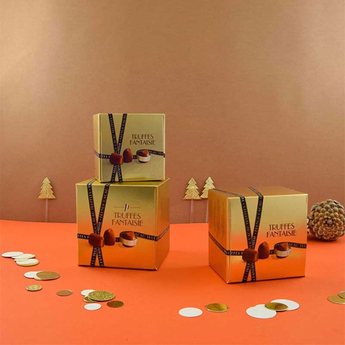 Krämig fransk tryffel från Mathez med en fyllig smak av champagne i guldig presentask. En perfekt gå-bort-present.