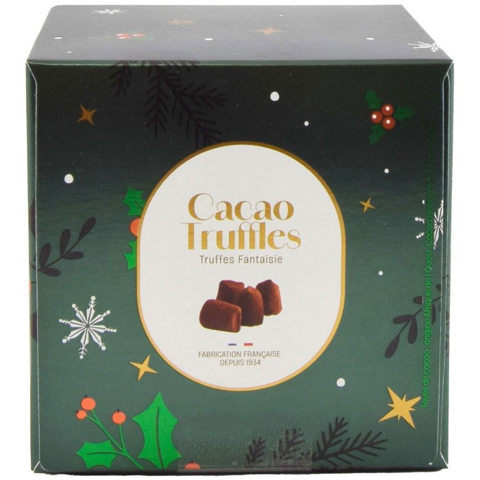 Julig grön presentask fylld med fransk minttryffel - en sammetslen chokladupplevelse med frisk smak av mint. Tryffeln tillverkas av Mathez, mästarna på fransk tryffelkonfekt, med naturliga ingredienser och en ljuvligt mjuk konsistens som smälter i munnen. En elegant och fräsch gåva som passar året runt.