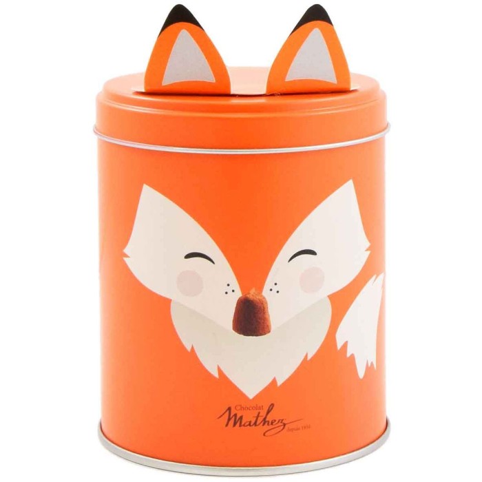 En oemotståndligt krämig fransk chokladtryffel med fyllig smak av hasselnöt, förpackad i en lekfull presentburk som föreställer en räv. Perfekt som gå-bort-gåva, en söt detalj på fikabordet eller som en elegant avslutning på en god middag tillsammans med kaffe. En liten burk fylld av chokladmagi som både smakar och ser underbar ut.
