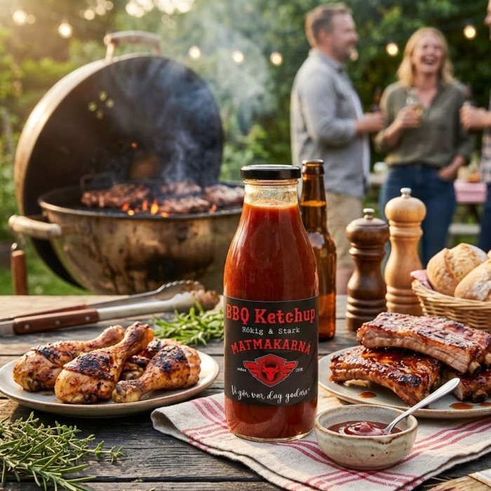 Denna BBQ-ketchup är en smakrik och rökig sås tillverkad med solmogna tomater från lokala odlare och naturlig hickoryrök. Denna sås har mindre socker än traditionella BBQ-såser, samtidigt som du får en fyllig smakupplevelse. Denna BBQ-ketchup är 100 % naturlig, fri från konserveringsmedel, tillsatser och färgämne