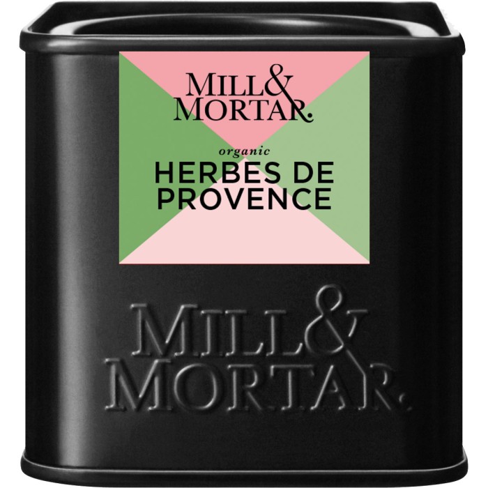 Mill & Mortar Herbes de Provence är en härlig, ekologisk blandning av de traditionella franska örterna timjan, rosmarin, oregano, basilika, kyndel och mejram. Denna sydfranska blandning är smakrik, söt och typisk i medelhavsköket till fågel, såser och soppor. Använd den gärna att strö på bröd, i sallader eller på pizza.