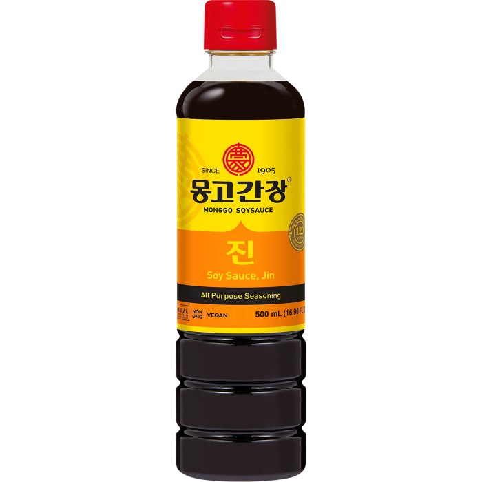 MONGGO Jin Sojasås är noggrant fermenterad för att uppnå en perfekt balans mellan sälta och umami. Den ger en djup och autentisk koreansk smak som passar utmärkt i soppor, såser och marinader.