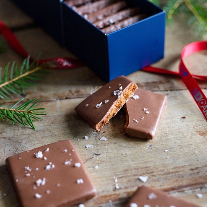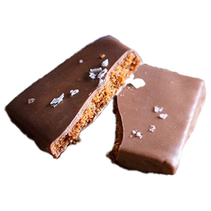 Frasiga franska pepparkakor som doppats i len mjölkchoklad och toppats med flingsalt är en kombination som blir farligt god redan från första tuggan. Den krispiga kakan ger ett härligt knäckigt crunch, mjölkchokladen rundar av med mjuk sötma och flingsaltet lyfter allt med en perfekt liten sälta som gör att du vill ta en till, och en till.