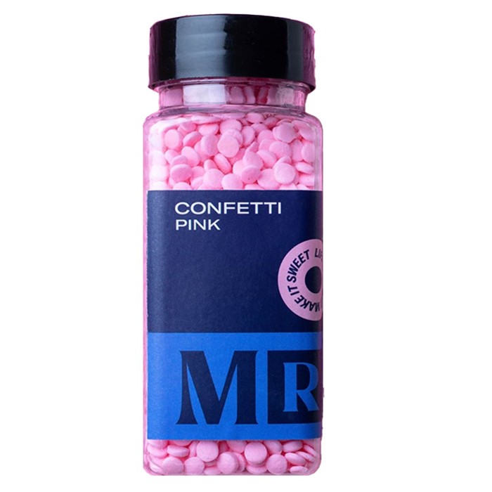 Skapa en söt och stilren finish med MR Cake Strössel Confetti Pink. De rosa pastillerna ger en härlig crunch och en dekor som passar lika bra till födelsedagstårtan som till cupcakes, småkakor, donuts och glass. Perfekt när du vill hålla en rosa tema känsla eller bara addera en extra gullig detalj. Strö över som sista steg på frosting, glasyr eller vispad grädde för bäst effekt.