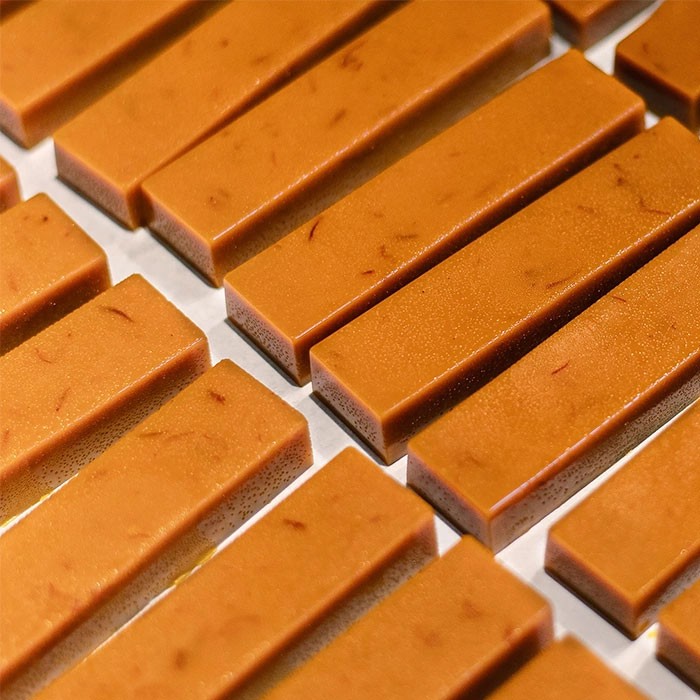 Det här är en kola som passar lika fint till kaffet som efter maten, och den är också en underbar liten present till någon som älskar saffran. Krämig, len och riktigt smakrik, en liten bit guldkant som är svår att motstå.