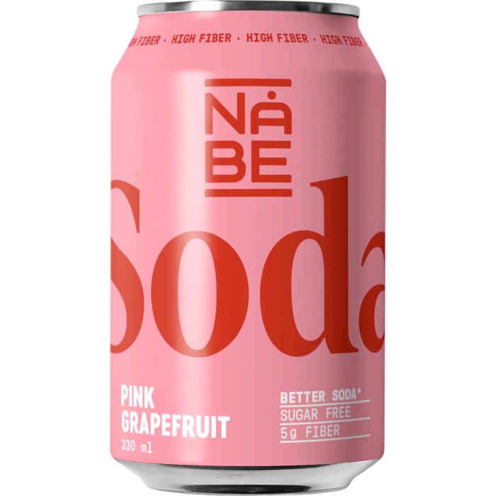 NÅBE Soda Pink Grapefruit är en uppfriskande dryck med fräsch och lätt bitter smak av rosa grapefrukt. Till skillnad från traditionella läskedrycker innehåller den akacia- och cikoriafiber istället för sockerarter, vilket bidrar till en lägre blodsockerhöjning efter konsumtion.