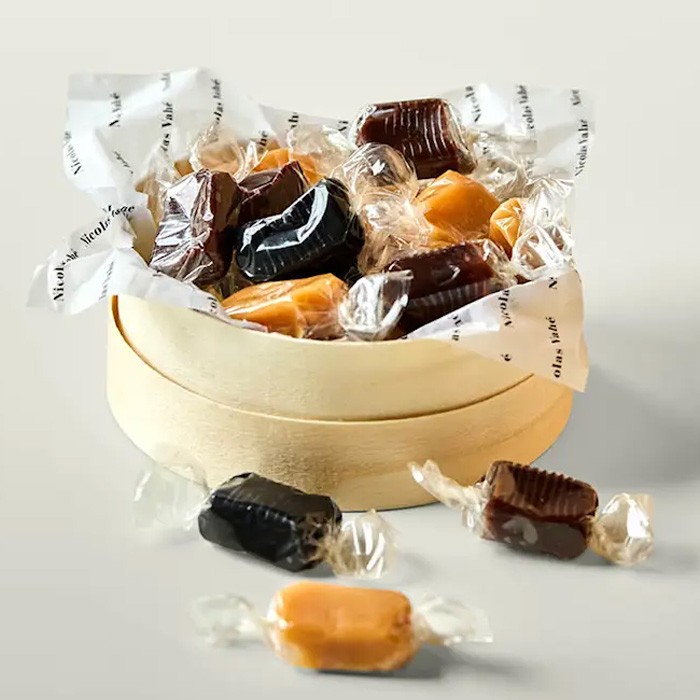 Nicolas Vahé Caramels Mixed är en härlig blandning av mjuka kolor i tre klassiska smaker: choklad, grädde och lakrits. Varje kola har en len och krämig konsistens som smälter i munnen och ger en fyllig smakupplevelse med perfekt balans mellan sötma och rika toner.