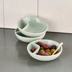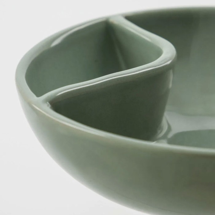 Servera oliver och nötter på ett stilfullt och praktiskt sätt. Uppläggningsfatet är tillverkat av mintgrönt stengods och har en smart, tvådelad design som gör det enkelt att hålla kärnor och skal åtskilda från snacksen.