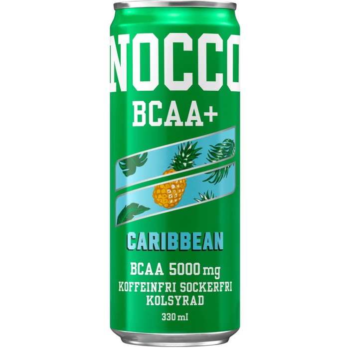 NOCCO Caribbean Koffeinfri BCAA+ är precis vad namnet antyder: den älskade smaken av Karibien, men helt utan koffein. Denna kolsyrade dryck bjuder på en härlig smak av söt ananas som ger en känsla av sommar på burk året om. Istället för koffein ligger fokuset här på ett extra högt innehåll av BCAA (5000mg per burk), vilket gör den till en utmärkt partner för återhämtning efter träningspasset eller som en uppfriskande törstsläckare när som helst på dygnet. Drycken är sockerfri och berikad med sex olika vitaminer, vilket gör den till ett balanserat val för gym, caféer och alla med en aktiv livsstil som vill ha funktion utan stimulanter.